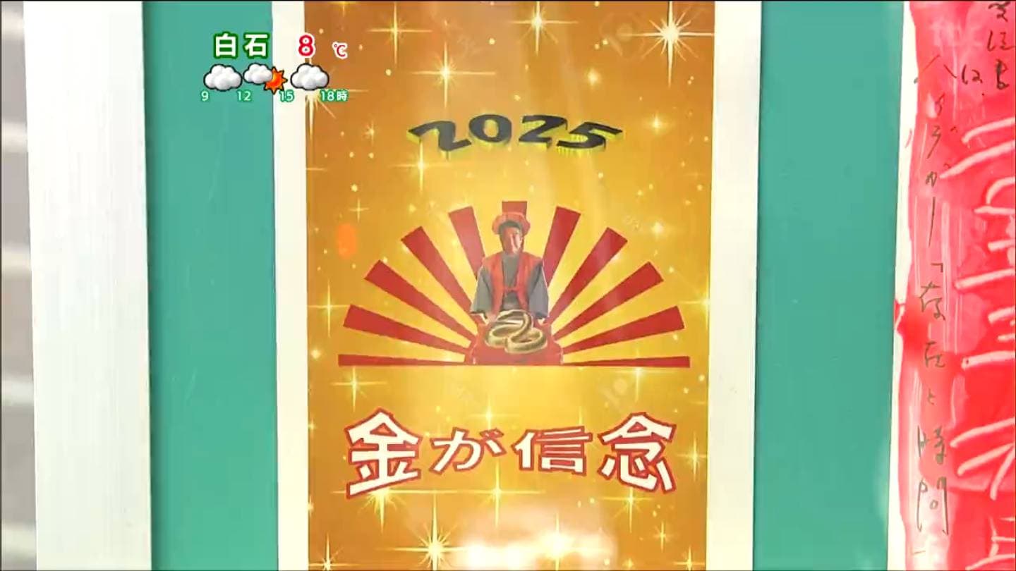 こちらは、「謹賀新年」と去年の漢字「金」をひっかけたユニークな一枚です。
