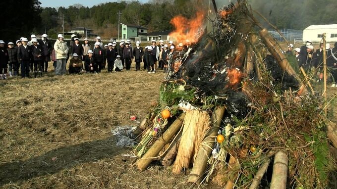 一年間の無病息災を願います。あすの「小正月」を前に、正月飾りや書初めなどを燃やす「とんど祭り」が津山市の高田地区で行われました。