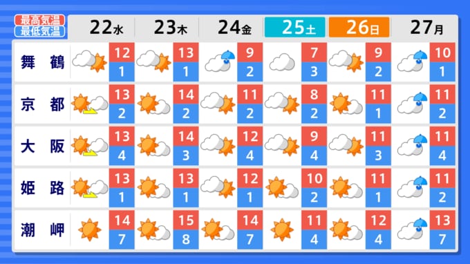 中国・四国の明日以降の週間天気(21日~27日まで)