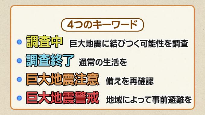 南海トラフ地震臨時情報には4つのキーワードがあります。
