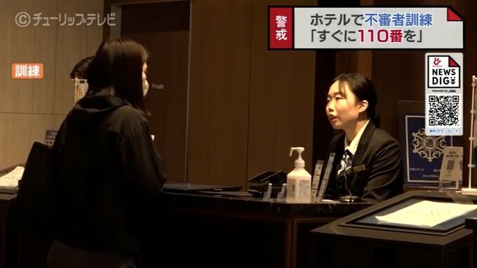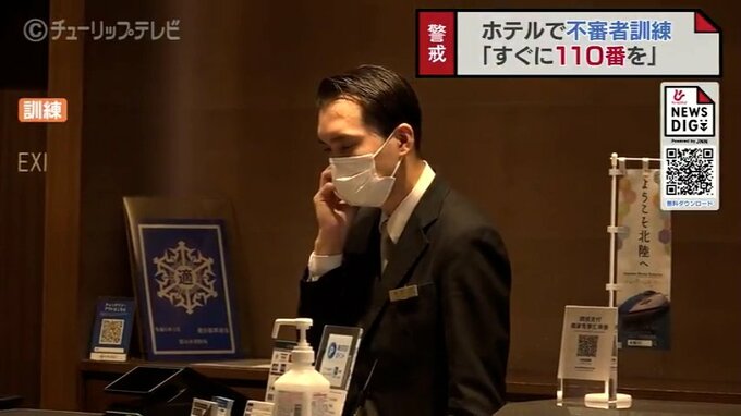 富山市のホテルで14日、不審者を想定した対応訓練が行われました。