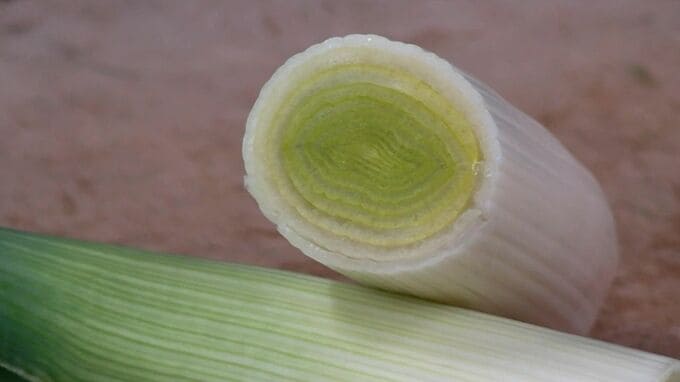 「リーキは加熱して食べるととても美味しいです。がんばれ受験生ということでリーキの切り口と同じように丸をいっぱいとっていただきたい」