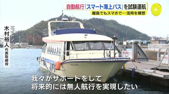 広島県大崎上島町で、自動航行システムを搭載した船を使って、離島に荷物を運ぶ試験運航が始まりました。