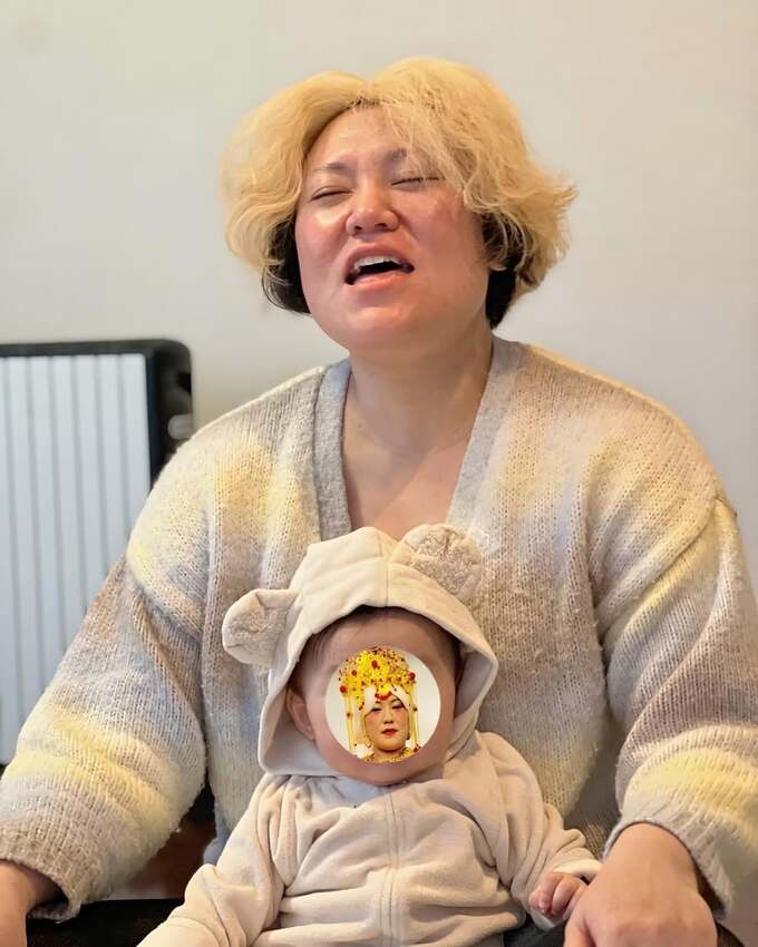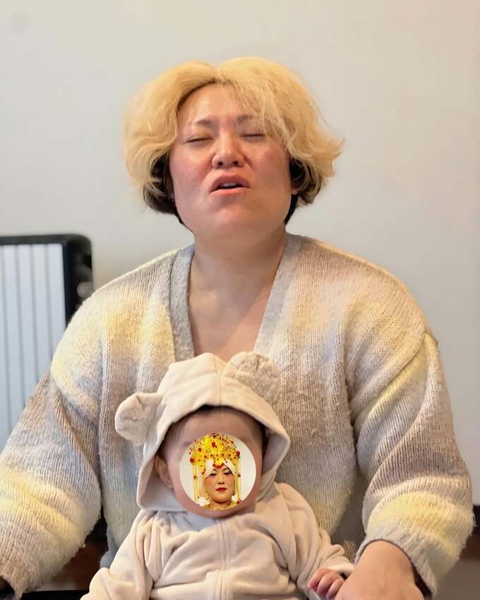 お笑いコンビ「フォーリンラブ」のバービーさんが自身のインスタグラムで、子守歌を歌う写真を投稿しました。