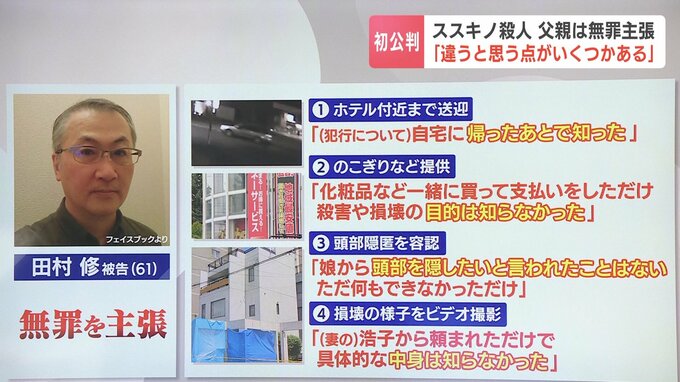 一方、14日から始まった裁判員裁判で、田村修被告は「違うなと思う所がいくつかあります」として起訴内容を否認しています。修被告は、指摘されている自身の4つの行動について、次のような点をあげ、無罪を主張しています。