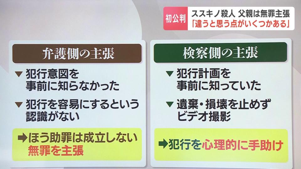 これに対して、検察側は、犯行計画を事前に知っていて、遺棄・損壊を止めずにビデオ撮影もしており、犯行を心理的に手助けしたと主張しています。