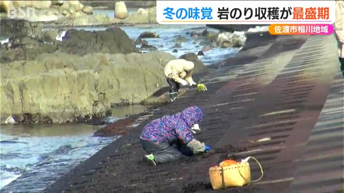 新潟県佐渡市で、冬の味覚『岩のり』の収穫が最盛期を迎えています。