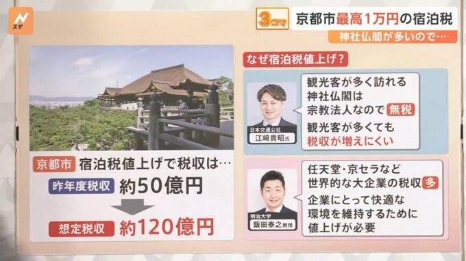 また、明治大学の飯田泰之教授は「任天堂・京セラなど世界的な大企業の税収が多い京都市は、企業にとって快適な環境を維持するために値上げが必要」としています。