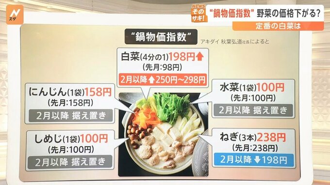 “鍋物価指数”は? 定番の白菜は上昇ペース