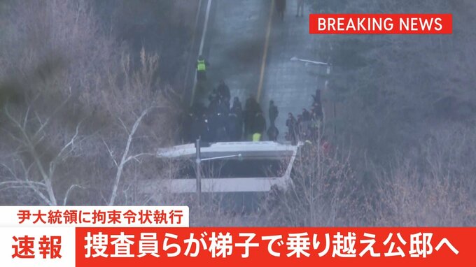 韓国の尹大統領に対する拘束令状を執行している合同捜査本部の捜査員らが、公邸に続く道をふさいでいた大統領警護庁の車両を梯子で乗り越えたと韓国メディアが報じました。