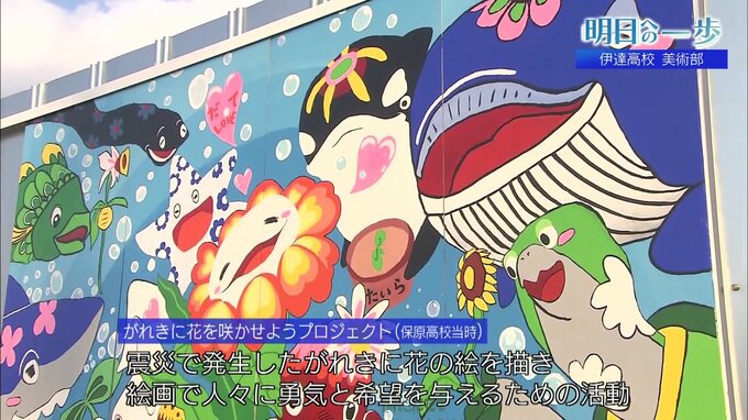 「震災の後に復興支援活動のような形で活動していた時期もありますし、得意な美術を活かして、地域のお役に立てるとかそういった活動も大事だなって思ってますんで、積極的にいろいろなイベントに参加して活動しています。」