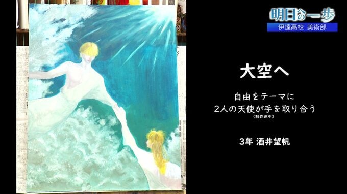 「美術って一人で作品に打ち込んで、絵に対して一人で考えて積み上げていくものだと思っていたんですけど、たくさんの作品を見て、いろんな人と話をして、お互いに作品を向上させていくっていうところがあって。楽しいです、やりがいがあって。」