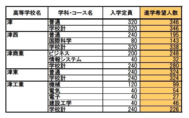 三重県立高校入試2025【進学希望状況・倍率】桑名「理数」2.60倍、松阪「理数」2.33倍、四日市農芸「農業科学」2.03倍 全日制・定時制・通信制