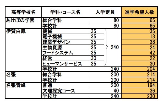 三重県立高校入試2025【進学希望状況・倍率】桑名「理数」2.60倍、松阪「理数」2.33倍、四日市農芸「農業科学」2.03倍 全日制・定時制・通信制 CBCテレビ 2025年1月16日(木) 17:22 国内