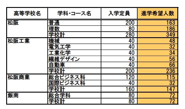 三重県立高校入試2025【進学希望状況・倍率】桑名「理数」2.60倍、松阪「理数」2.33倍、四日市農芸「農業科学」2.03倍 全日制・定時制・通信制