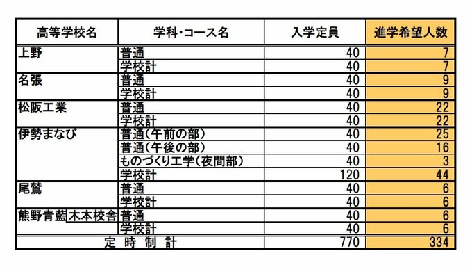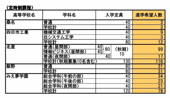 三重県立高校入試2025【進学希望状況・倍率】桑名「理数」2.60倍、松阪「理数」2.33倍、四日市農芸「農業科学」2.03倍 全日制・定時制・通信制 CBCテレビ 2025年1月16日(木) 17:22 国内