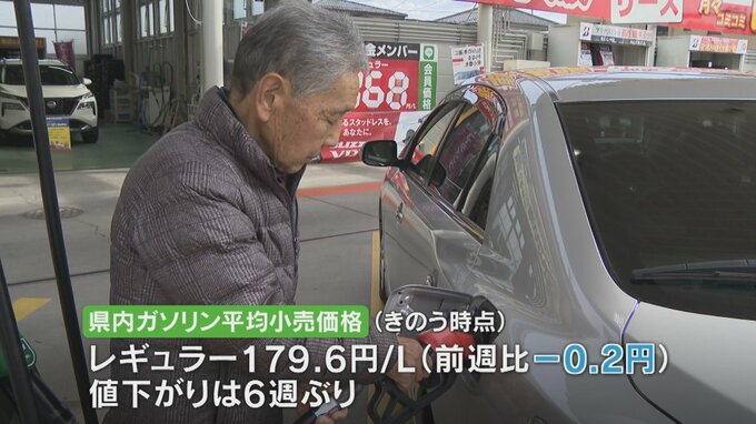 資源エネルギー庁によりますと、県内のレギュラーガソリンの平均小売価格は14日時点で1リットル179.6円で前の週より0.2円下がりました。