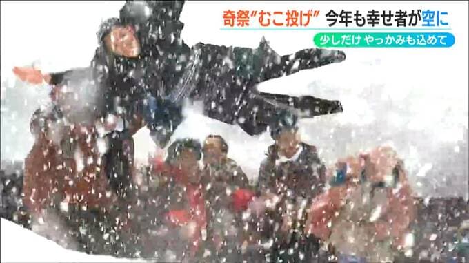 新潟県 十日町市 松之山地域に伝わる小正月の奇祭『むこ投げ』が行われ、今年もまた婿が空高く宙を舞いました。この日を待っていたかのように、雪はしんしんと降り積もりました。仲間たちに担がれ、今年の主役が登…