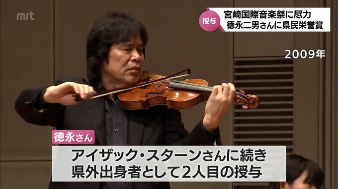 県外出身者に授与されるのは2人目です。宮崎国際音楽祭の創設に尽力したバイオリニストの徳永二男さんに、宮崎県の「県民栄誉賞」が贈られることになりました。県民栄誉賞が贈られるのは、バイオリニストで宮崎国…