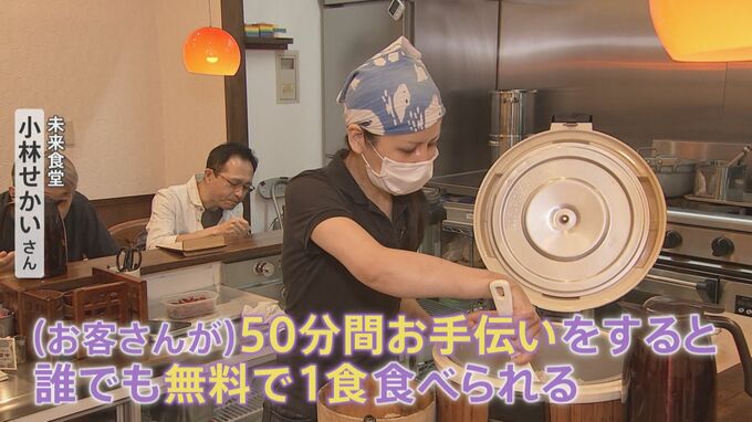 「(お客さんが)50分お手伝いをすると誰でも“無料で1食”食べられる“まかない”という仕組みがあります」