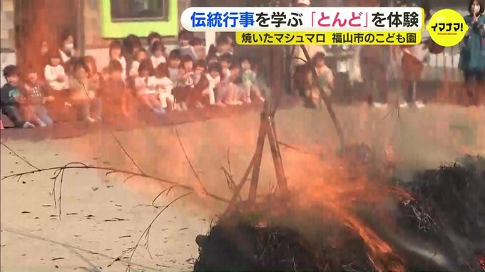 広島県福山市のこども園で、子どもたちが「とんど」を体験しました。福山市にある「かも・なかよしこども園」です。子どもたちは「とんど」をする理由を聞きました。せんせいの説明「煙に神様が乗ってお空の上に帰…