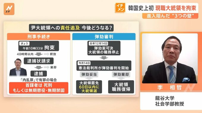 韓国には、検察に代わって政府高官の汚職などを捜査する「高位公職者犯罪捜査庁」という、前の文在寅大統領政権のときに作られた専門機関があるそうです。その高位公職者犯罪捜査庁と警察などの合同捜査本部が5時間半対峙しましたが、拘束は失敗に終わっていました。