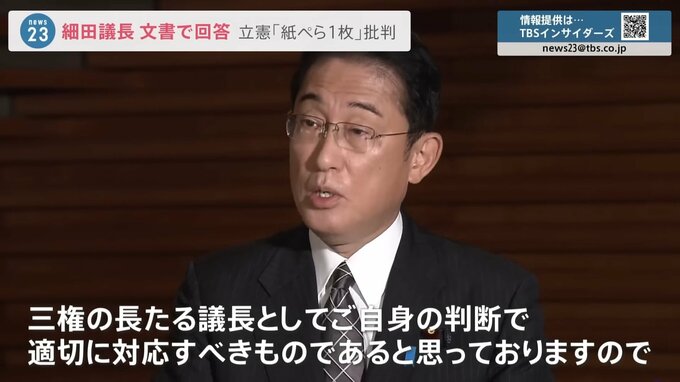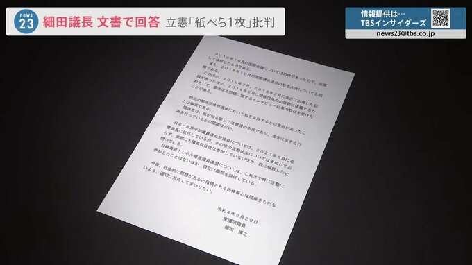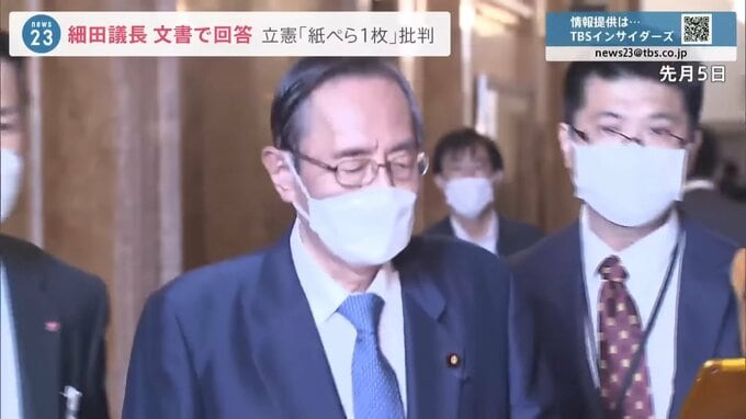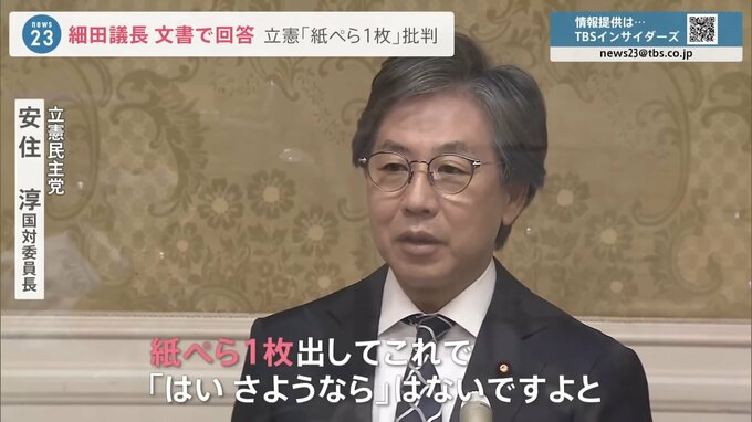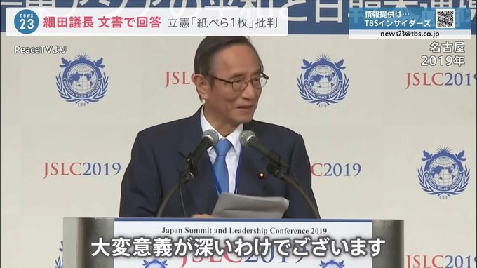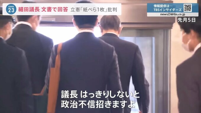■「自民党の調査以下」細田議長の”紙ぺら1枚”回答に野党批判