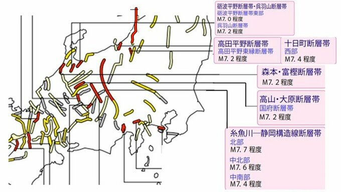 山梨県と長野県 M7.6想定で発生確率14%~30%の活断層