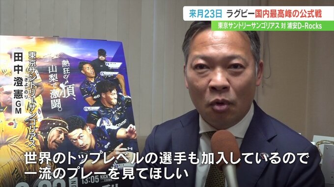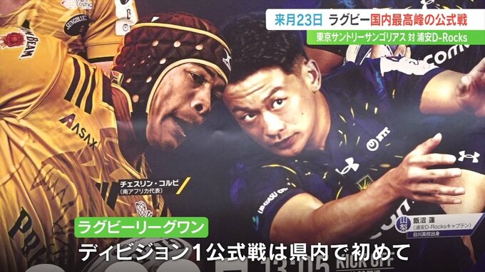 リーグワンの最高峰ディビジョンワンの公式戦が県内で行われるのは初めてで、サントリーと対戦する浦安D-Rocksは日川高校出身の飯沼蓮選手がキャプテンを務めています。