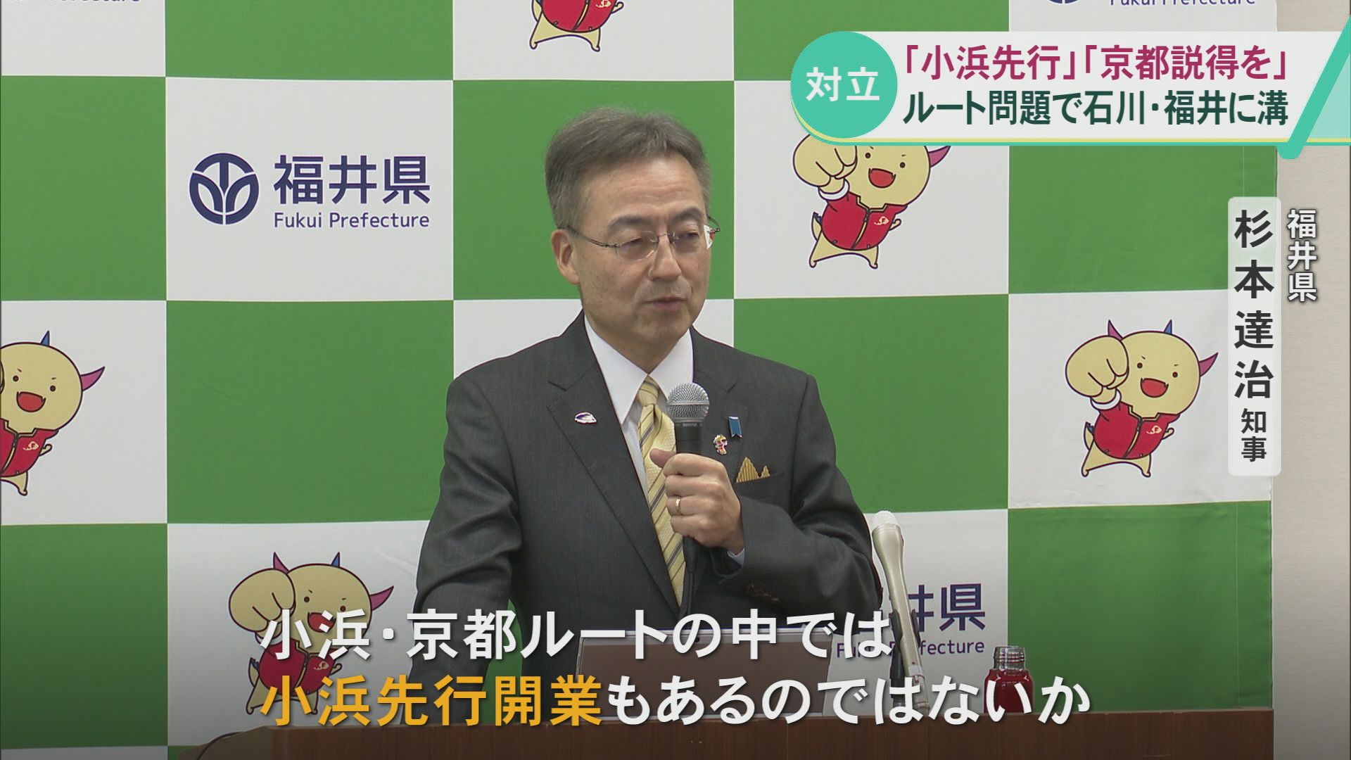 杉本知事と歩調を合わせる形で小浜ルートで進めるべきとの立場ではありますが、石川県内の首長や県議らから米原ルートを推す声が強まるなか、どちらかに与することを避けたような物言いでした。