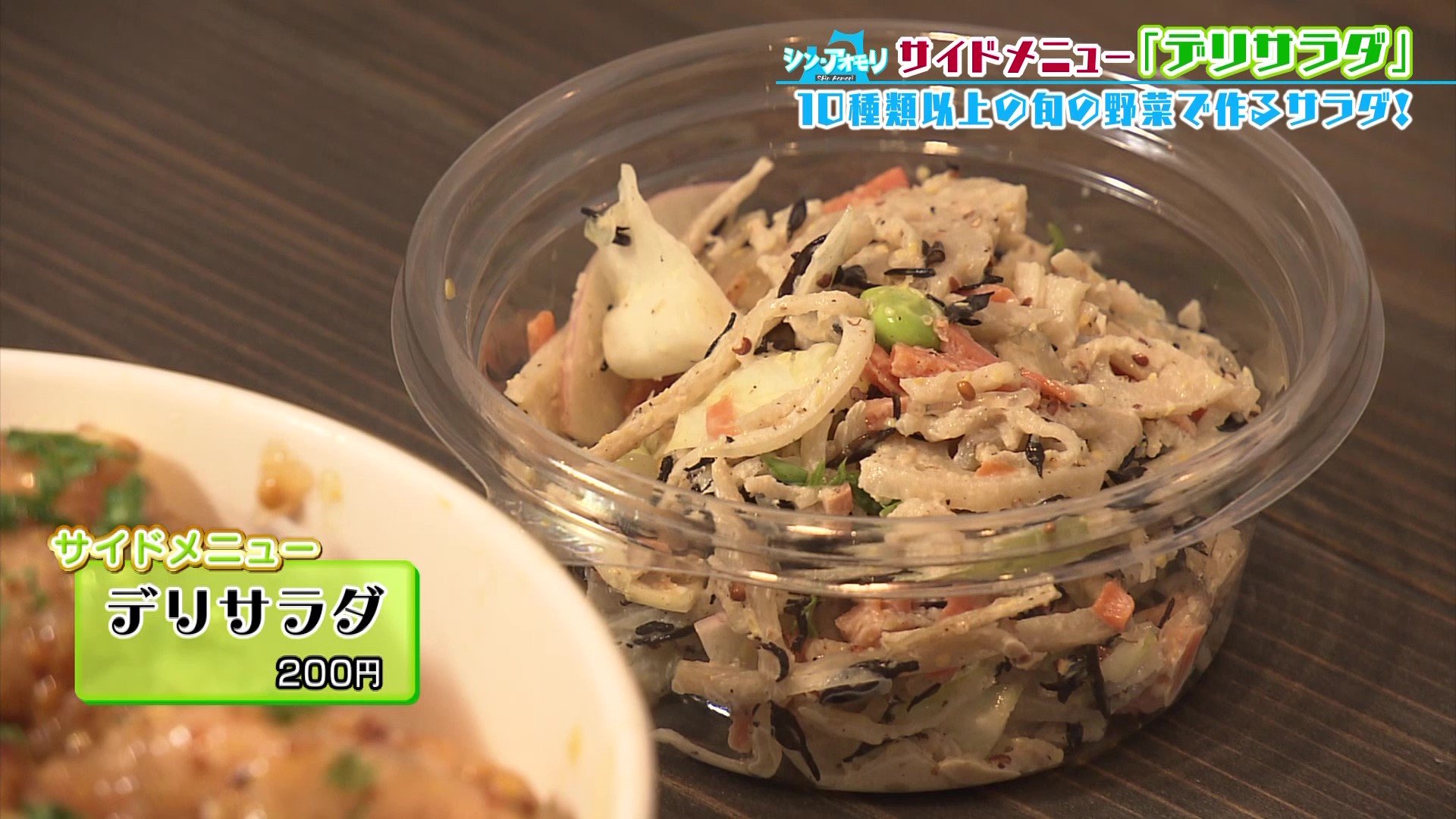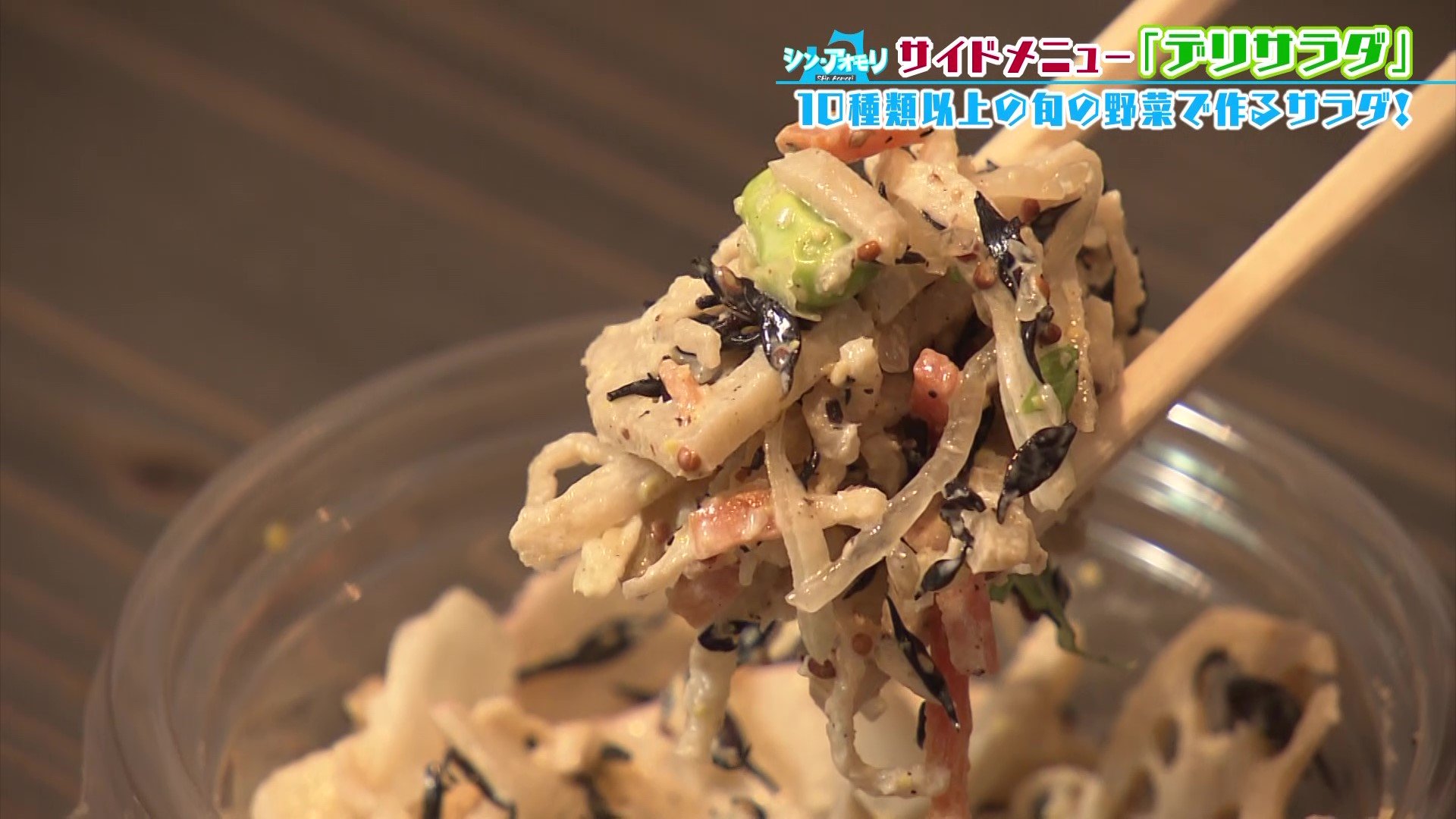 サイドメニューの【デリサラダ】(200円)で、“追いサラダ”も可能。10種類以上の旬の野菜を使用したお腹も満足・彩り豊かなサラダです。