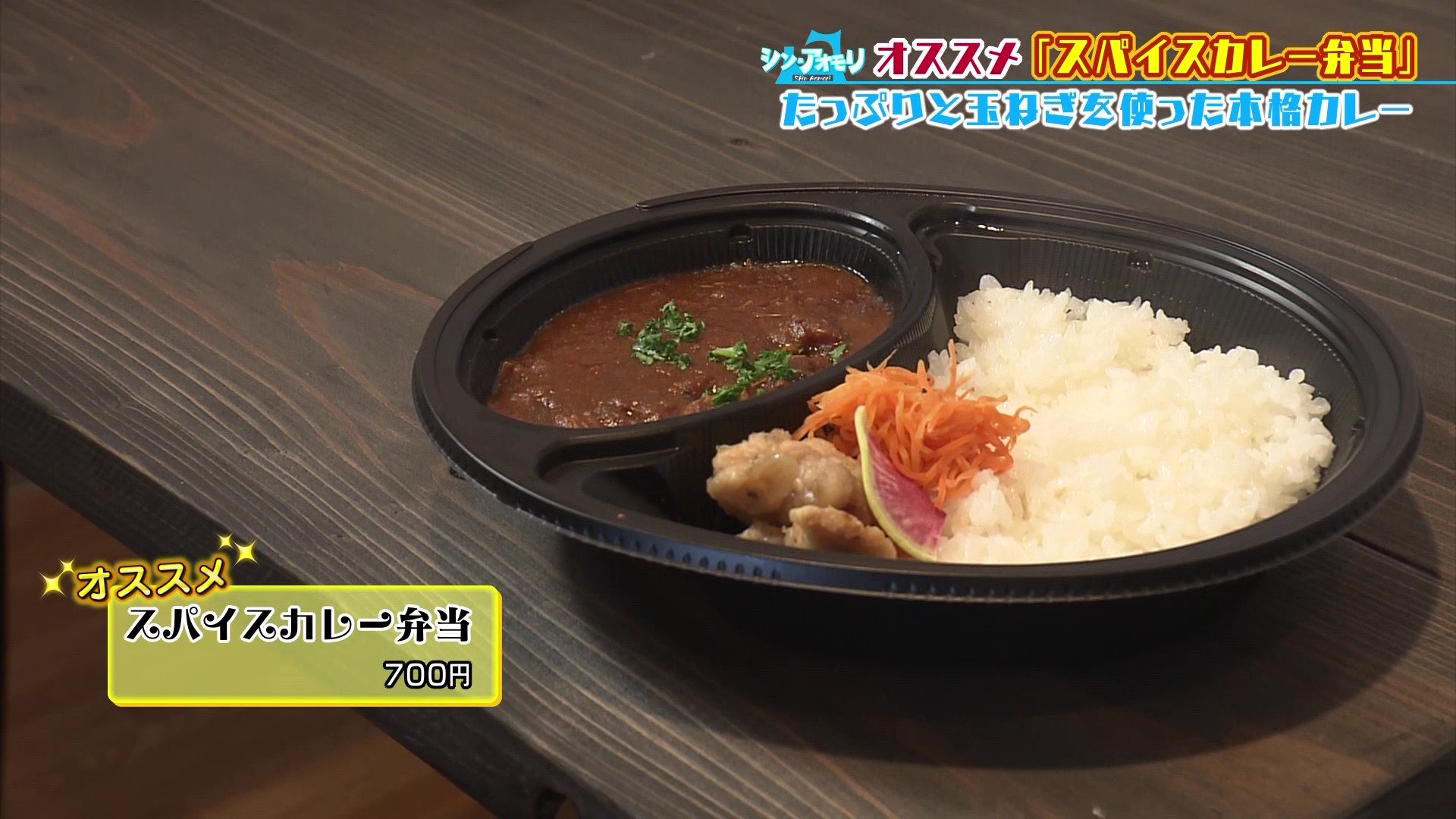 続いていただくのは、【スパイスカレー弁当】(700円)。あめ色に炒めたたっぷりの玉ねぎと、トマトやフルーツを数種類のスパイスで煮込んだ中辛のスパイスカレーです。