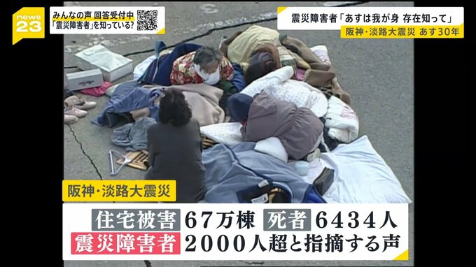 住宅の被害は約67万棟、亡くなったのは6434人で、震災障害者は2000人を超えると指摘する声もあります。