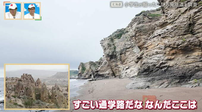 現実離れしたような通学路の景色に、道マニアは「この砂浜が廃道の続き。独特の風化が生み出した美しさ。まさに、道の極地。日本のカッパドキアのよう」と言います。