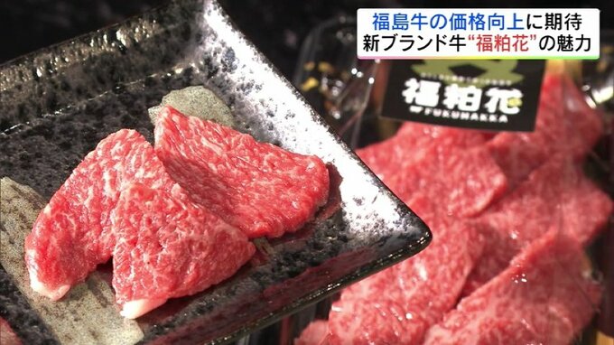 県産の和牛は震災、原発事故の後、風評被害にさらされ、いまも全国平均と比べて価格が低い状態が続いています。こうした状況を打開しようと、福島牛「福粕花」は、県がおよそ4年の歳月をかけて開発しました。