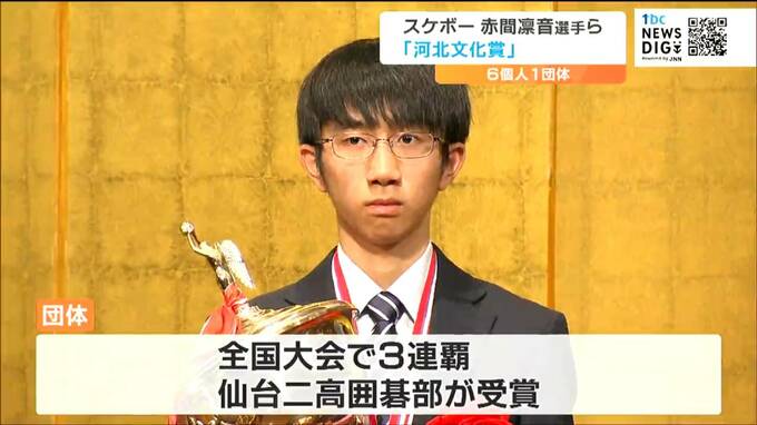 団体では、全国大会で3連覇を達成した仙台二高囲碁部が受賞しています。河北文化賞は、東北の学術や文化などの発展に貢献した個人や団体を称えるもので今回で74回目を迎えます。