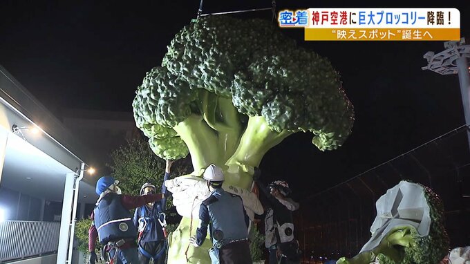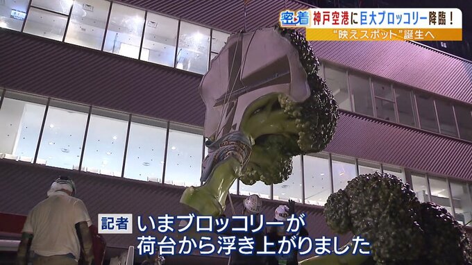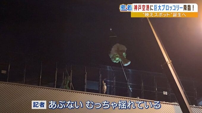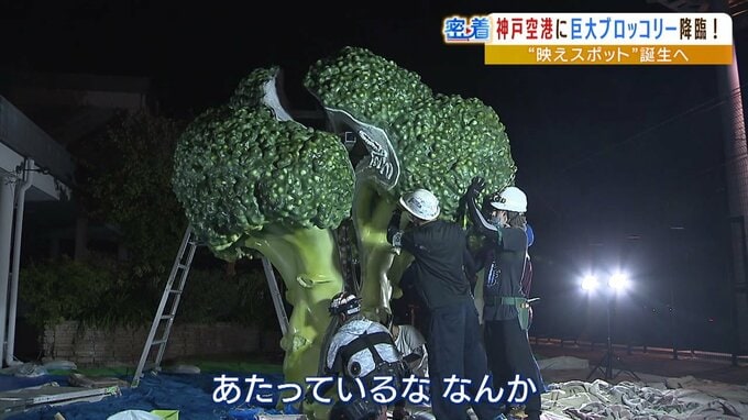「ブロッコリーのオブジェをクレーンでつり上げて、現場に設置する作業を今からしていきます。大がかりですね」