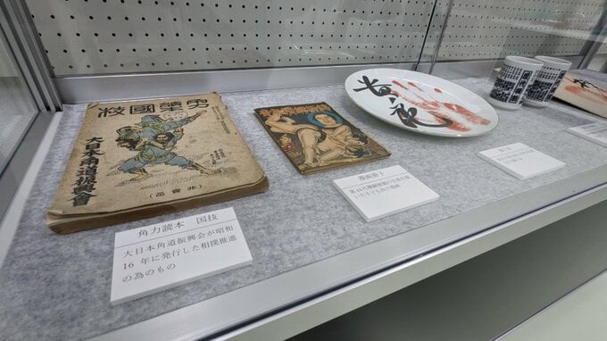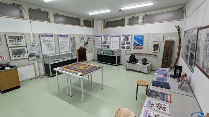 「釜石の鉄人(スポーツマン)」と題して開かれているこの企画展は、釜石市内に残るスポーツ関係の資料74点を集めて行われているもので、会場にはラグビーを始め、硬式野球、相撲、水泳、柔剣道などの資料が並びます。