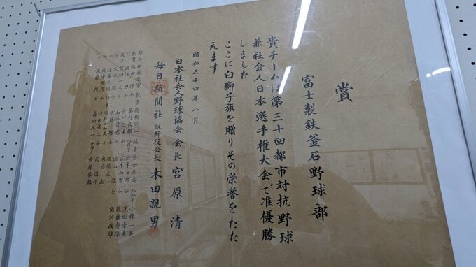 硬式野球では富士鉄釜石時代の1959年に都市対抗野球で全国準優勝、新日鉄釜石時代の1980 年には全国3位となり「東北の暴れん坊」と呼ばれました。