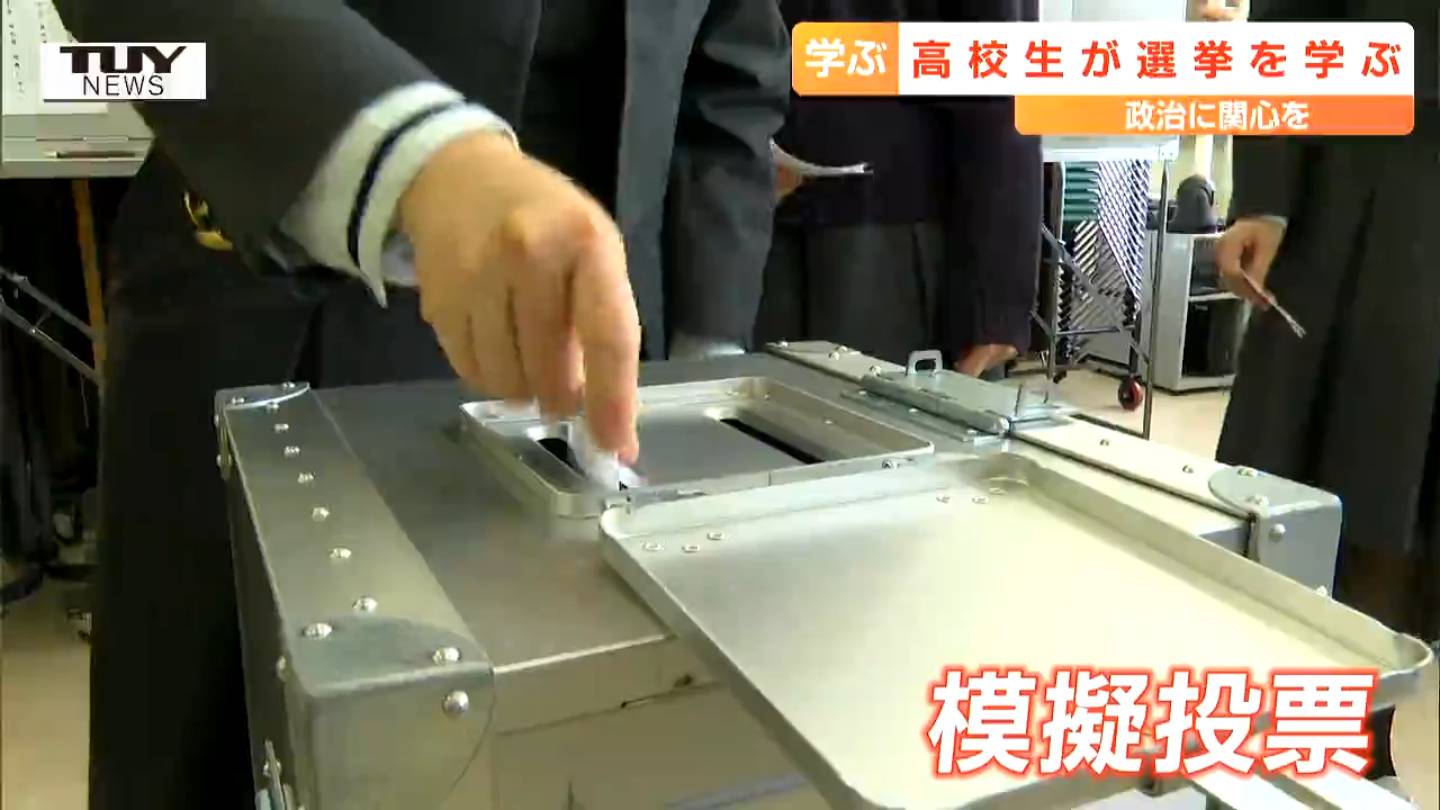 山形県山辺町の高校できょう、選挙について学ぶ出前講座が行われ、間もなく18歳になり選挙権を持つ高校生が選挙の仕組みを学びました。