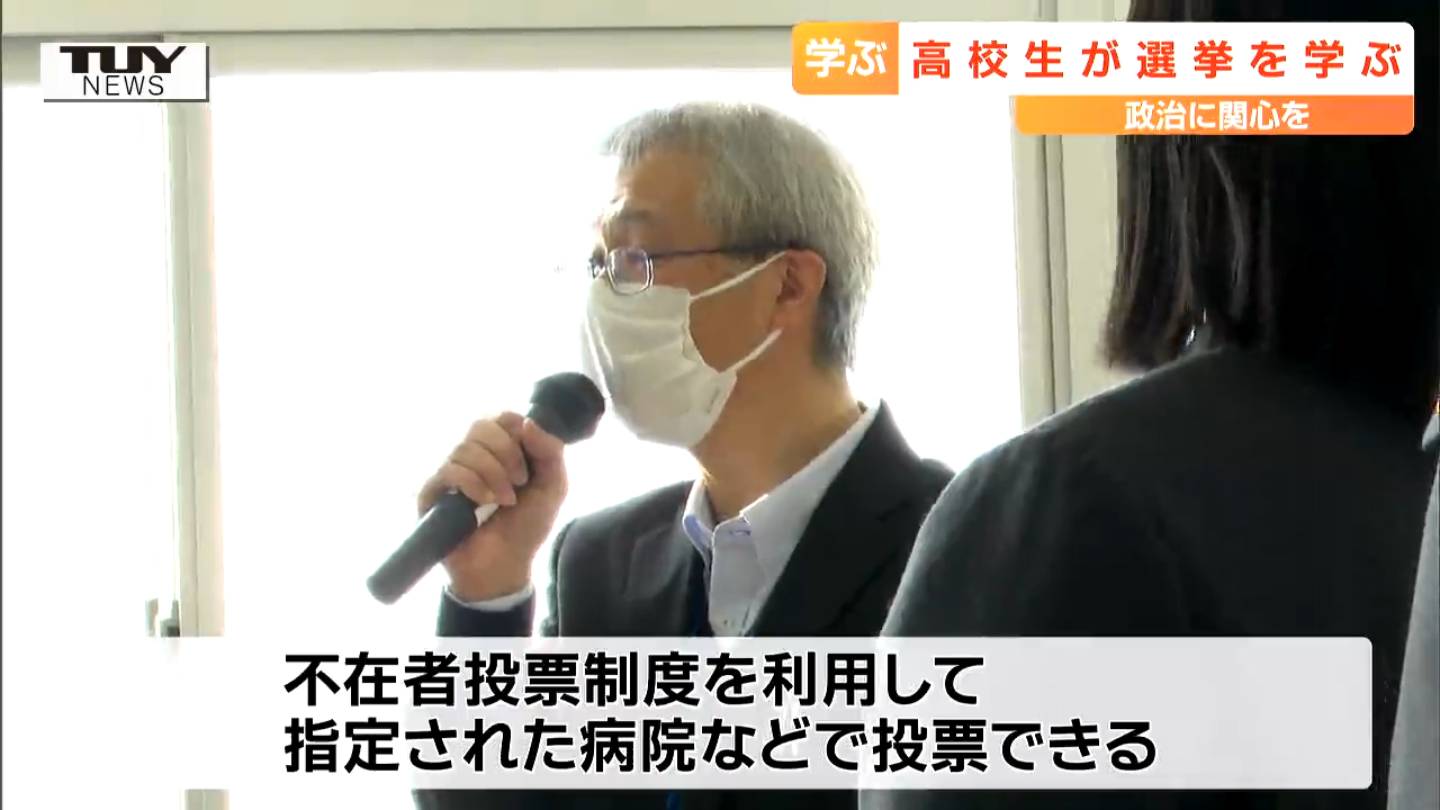 講義を行った山辺町選挙管理委員会からは、病院や福祉施設にいるため投票所に行くことが難しい人が少なくないものの不在者投票制度を利用して指定された病院などで投票ができることが生徒たちに伝えられました。