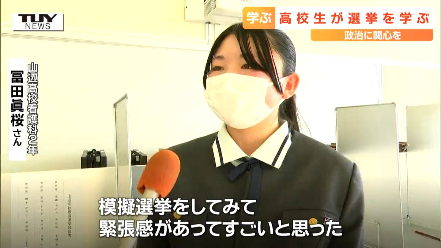 山辺高校看護科2年 冨田眞桜さん「模擬選挙をしてみて緊張感があって、すごいなと思いました。自分たちが看護師になった時にそれをやる機会があった時、もっと選挙について患者さんのことも考えて参加できたらと思いました」