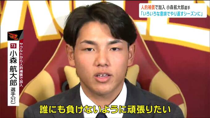 また、FA移籍した茂木栄五郎選手の人的補償としてヤクルトから加入した小森航大郎選手も会見に臨みました。