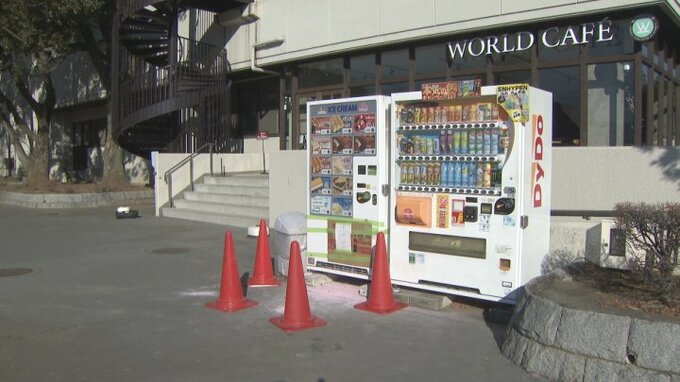 甲府市の小瀬スポーツ公園の自動販売機の一部が焼け焦げているのが見つかりました。