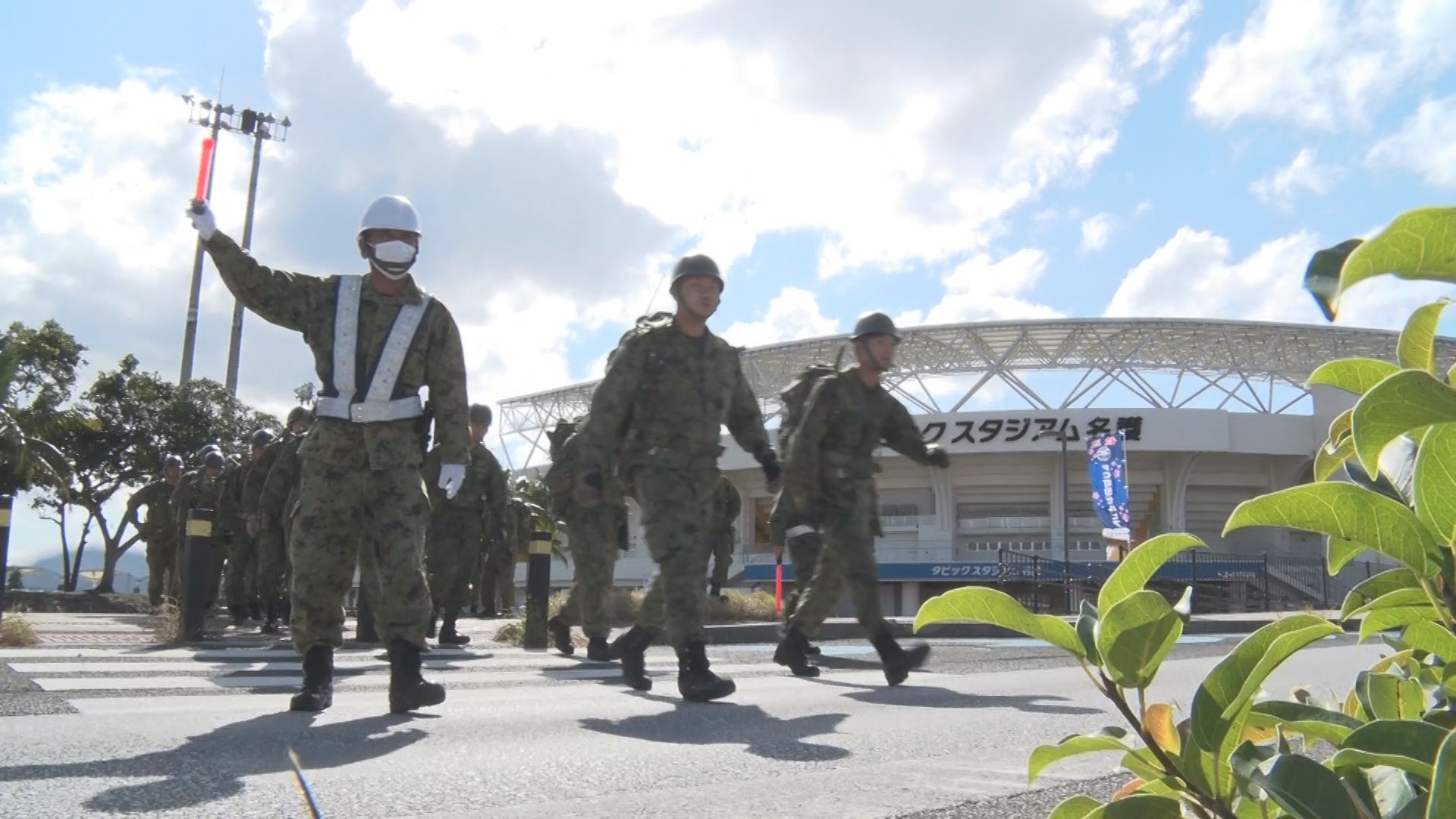 訓練では午前10時ごろと正午ごろの2回、隊員約50人が名護市内の中学校のグラウンドでヘリコプターの離着陸訓練を行ったほか、国道58号などを通る行進訓練も実施しました。