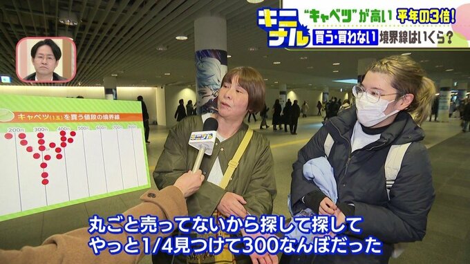 「なまら高いし、1玉売ってないよね。250円~300円くらいかな。丸ごと売ってないから探して探してやっと、4分の1を見つけて、300なんぼだったもんね。(何のお料理したんですか?あの時は、もつ鍋。どうしても食べたかったから」