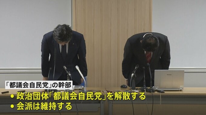会計担当者がパーティー収入の一部を政治資金収支報告書に記載しなかったとして略式起訴された事件を巡り、政治団体としての「都議会自民党」の解散が決まりました。都議会自民党 小松大祐 幹事長「我々、所属議…