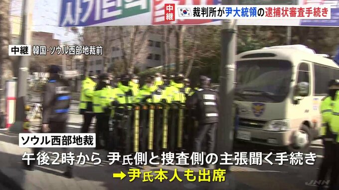 韓国の尹錫悦大統領に対する逮捕状の請求を受け、裁判所はきょう午後、尹氏出席のもと、逮捕が妥当なのかを審査するための手続きを行います。ソウルの裁判所前から中継です。裁判所の前ではすでに大勢の警察官が警…