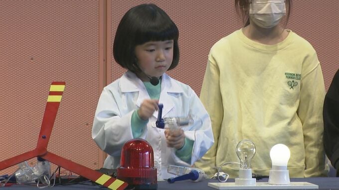 柚乃さんは、“白熱電球は、5人でワーッと回しても、2秒くらいしたらパッと点くけど、LEDは(1人の力で)1秒ですぐ点くので、すごいなと思いました!” と、感想を述べました。