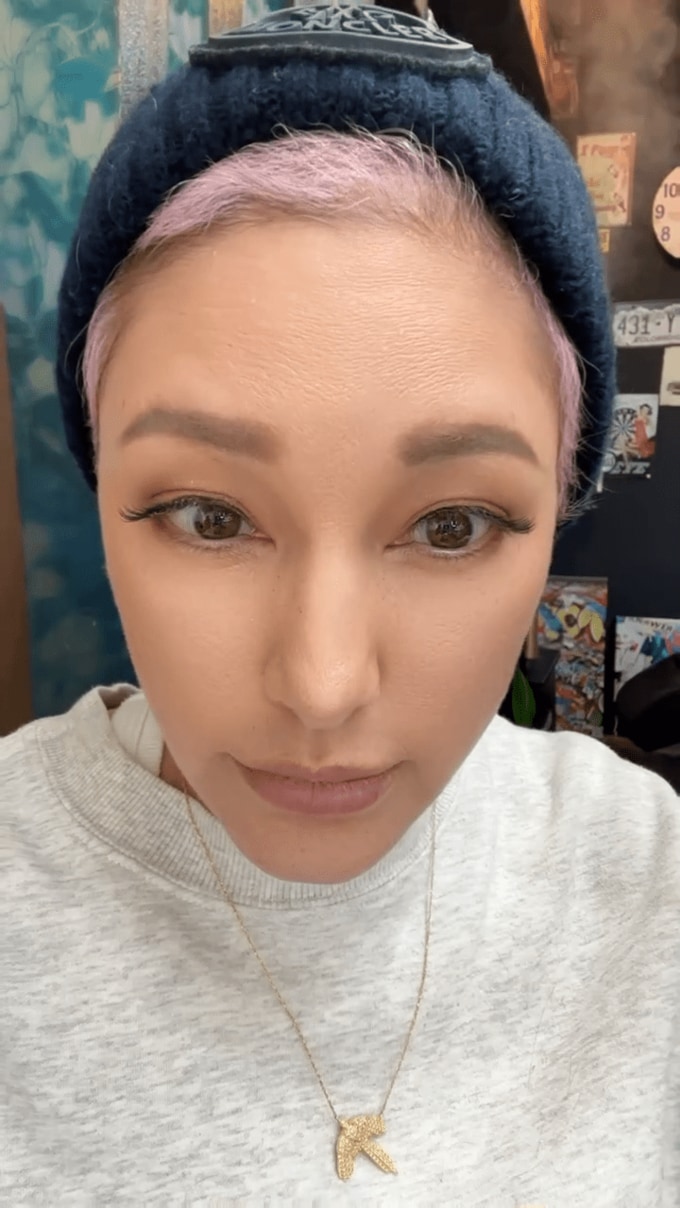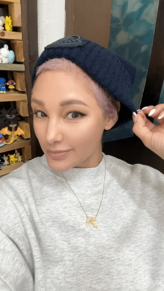 更に「そして、新たに抗がん剤が12月からスタートして、パクリタキセル。。そして投与2回目くらいから黒髪だけが抜け落ちて、、パラパラと、。、そして、白髪が残って ウィッグをつける際にサイドから白髪が目立つ様になって悩んでいました。」「なんせ長年ブリーチからのオンカラーばかりやって来たのだから、治療中の今、イマイチ今どうしたら良いのか? わからなくって」と、記しました。